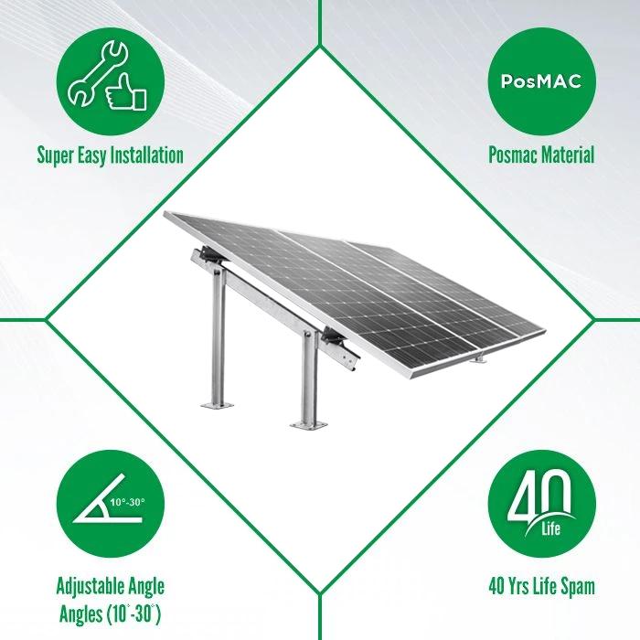 Loom solar introduces portable solar Installation kit for 3 nos. of solar panel.  You can install solar panel from 320 watt ~ 400 watt of any brand and any make. The portable solar panel stand is made of galvanized iron, the rust proof solar panel stand life is is more than 25 years.